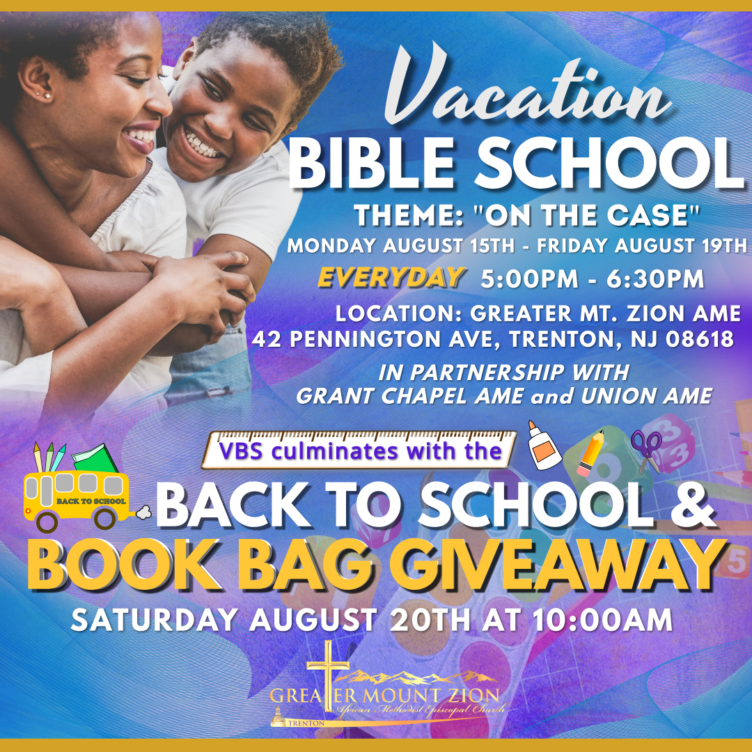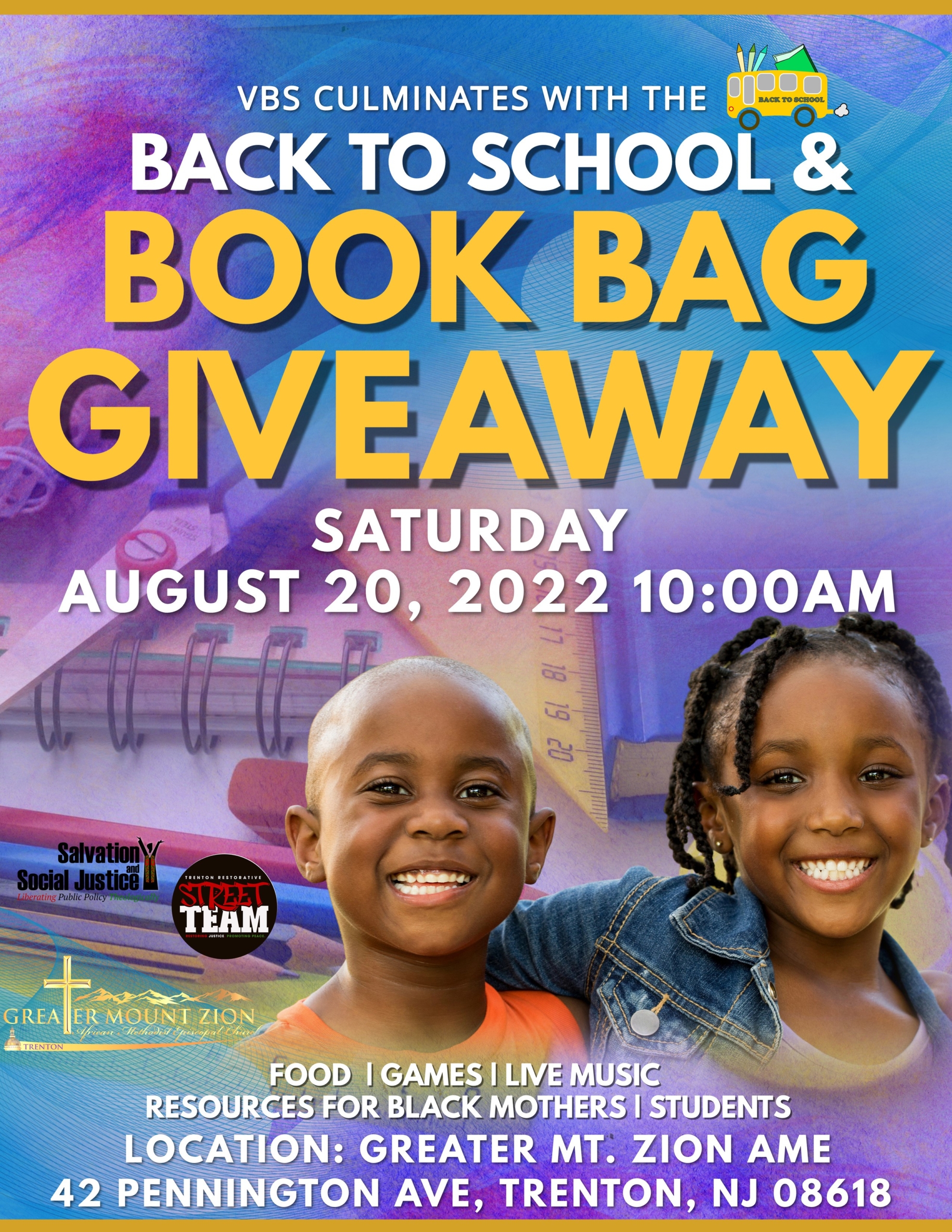 VBS CULMINATES WITH THE Back to School & Bookbag Giveaway Food | Games | Live Music | Resources for Black Mothers &