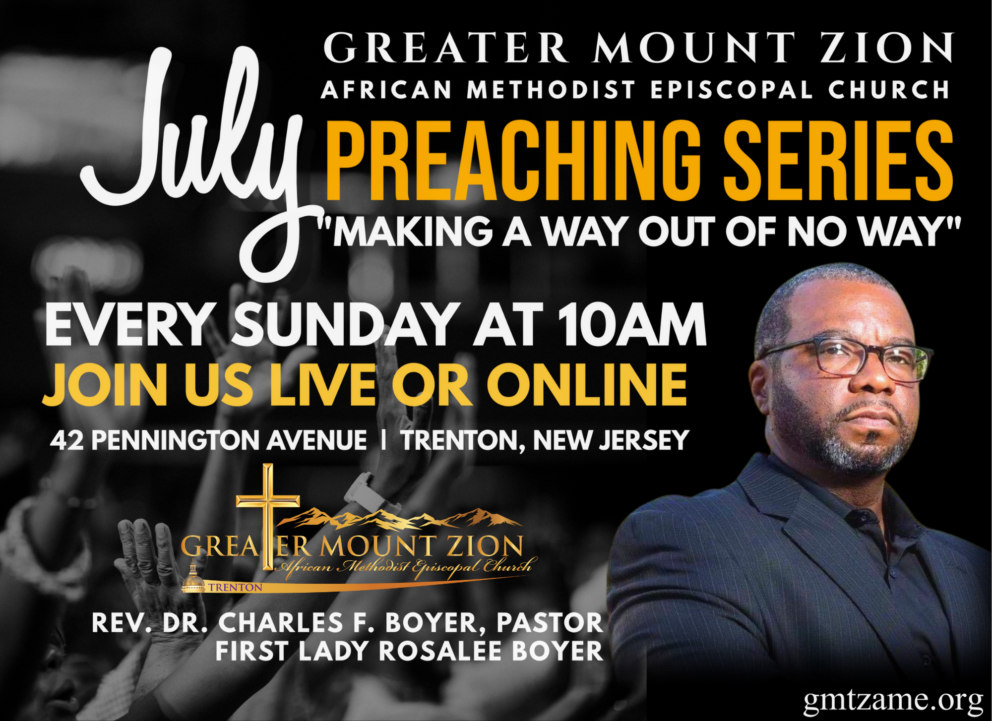 Making A Way Out Of No Way July Preaching Series Live and Virtual Rev. Dr. Charles F. Boyer, Pastor Rosalee Boyer, First