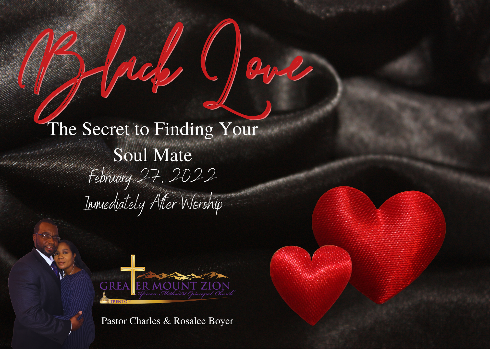 Black Love: The Secret to Finding Your Soul Mate Rev. Dr. Charles F. Boyer, Pastor First Lady Rosalee Boyer, Advisor (Immediately After
