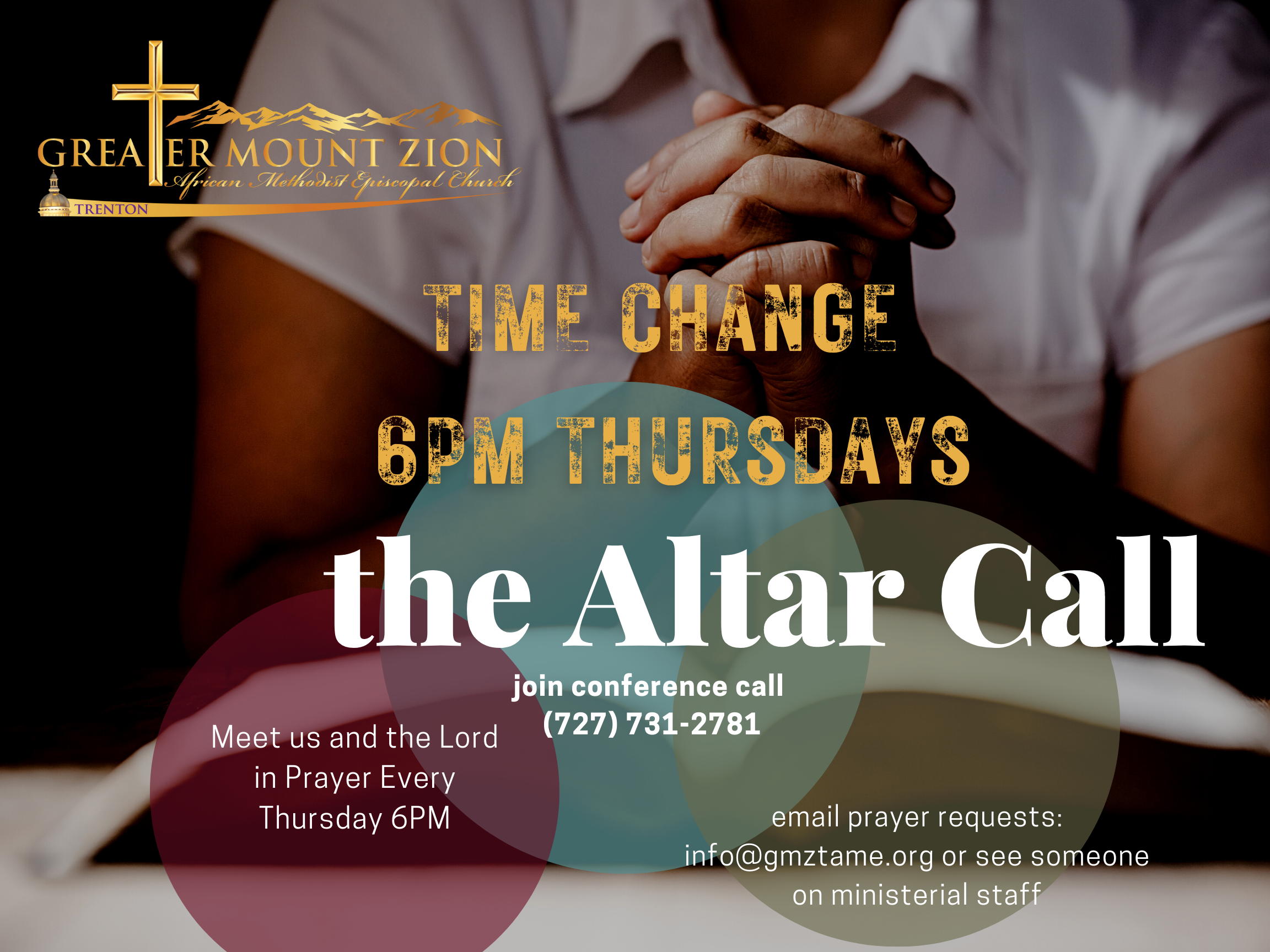 The Altar Call Meet us and the Lord in prayer Every Thursday @ 6pm Join conference call (727) 731-2781 Email prayer requests