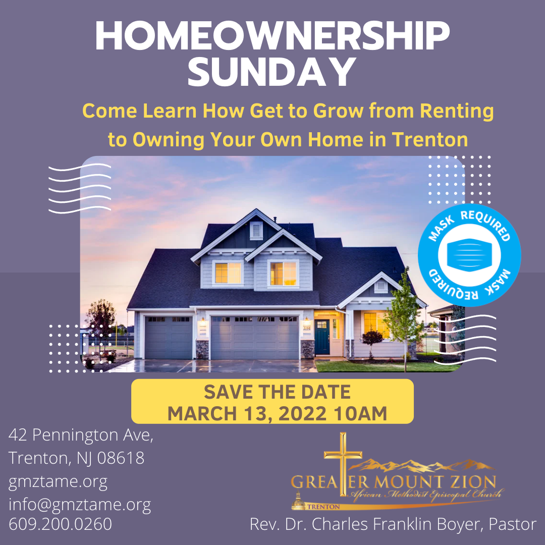 Homeownership Sunday Come Learn How to Grow from Renting to Owning Your Home in Trenton Rev. Dr. Charles F. Boyer, Pastor